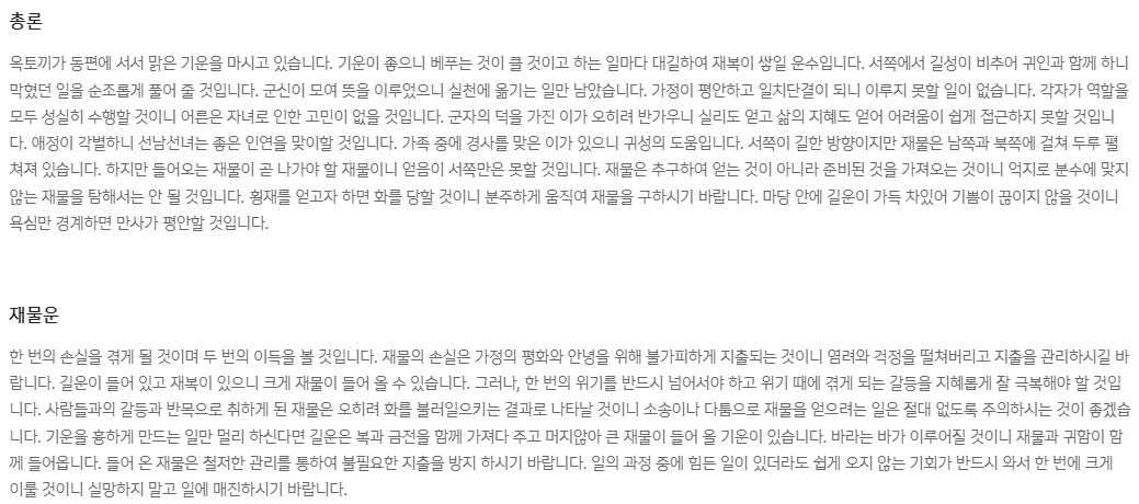 그러면 아래와 같이 무료 신년운세 결과가 나옵니다.