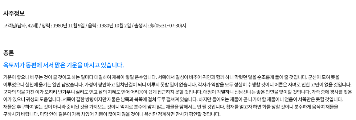 제 사주 결과가 나왔습니다.
