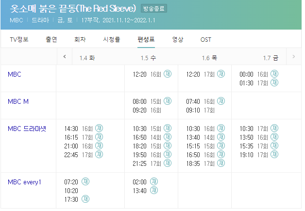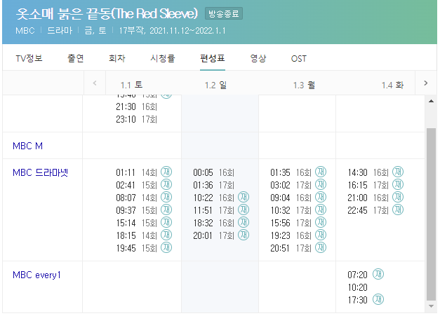 옷소매 붉은 끝동 재방송 편성표