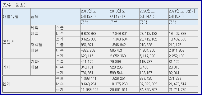 래몽래인 공모주의 주요 매출처는 콘텐츠 부분으로 약 99% 이상을 차지하고 있습니다.